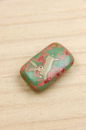 奈良井志野 漆工芸帯留め 月とうさぎ